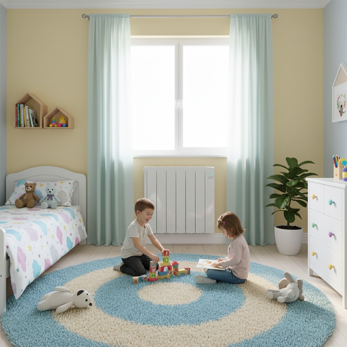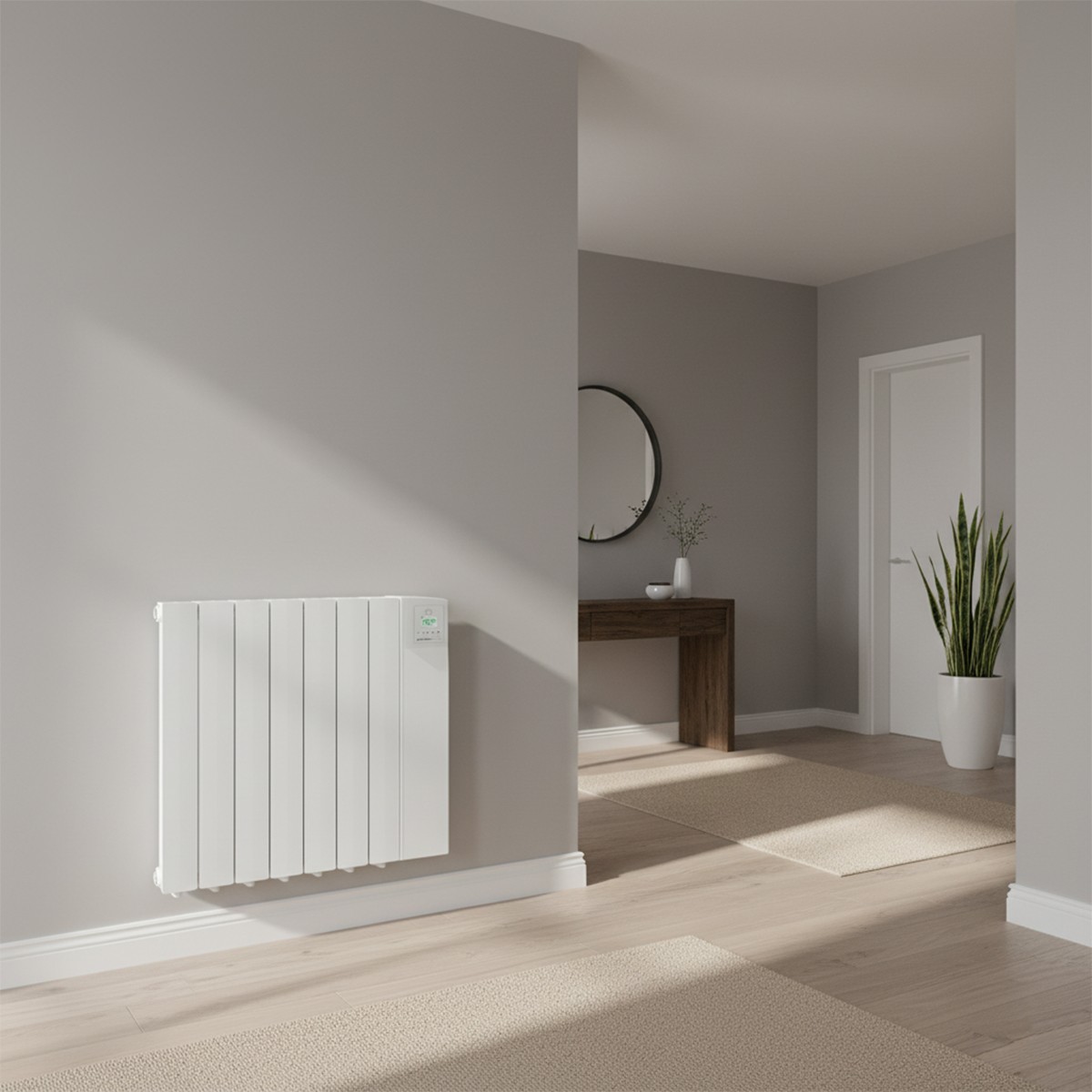 El radiador Sentinel 1000W ofrece calor uniforme en estancias de 10–13 m² gracias a su fluido de alta transferencia (167 W/elemento) y bajo consumo.