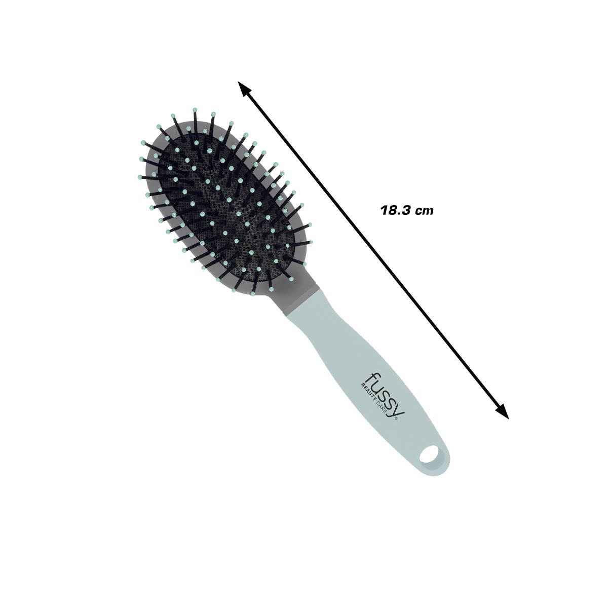 Cepillo clásico mini con púas de nylon flexibles y mango soft-touch, ideal para desenredar suavemente el cabello largo y mantenerlo siempre perfecto.