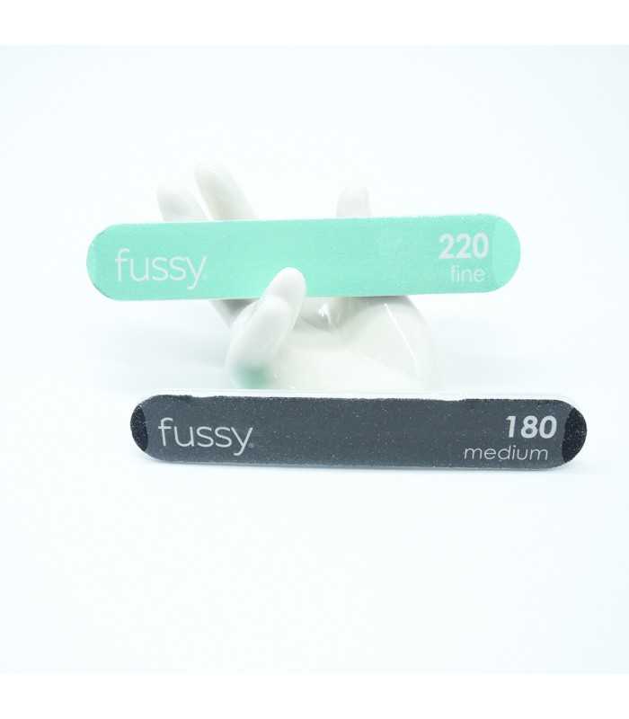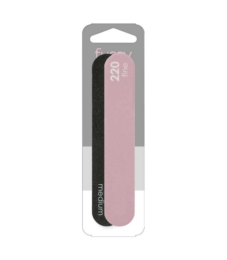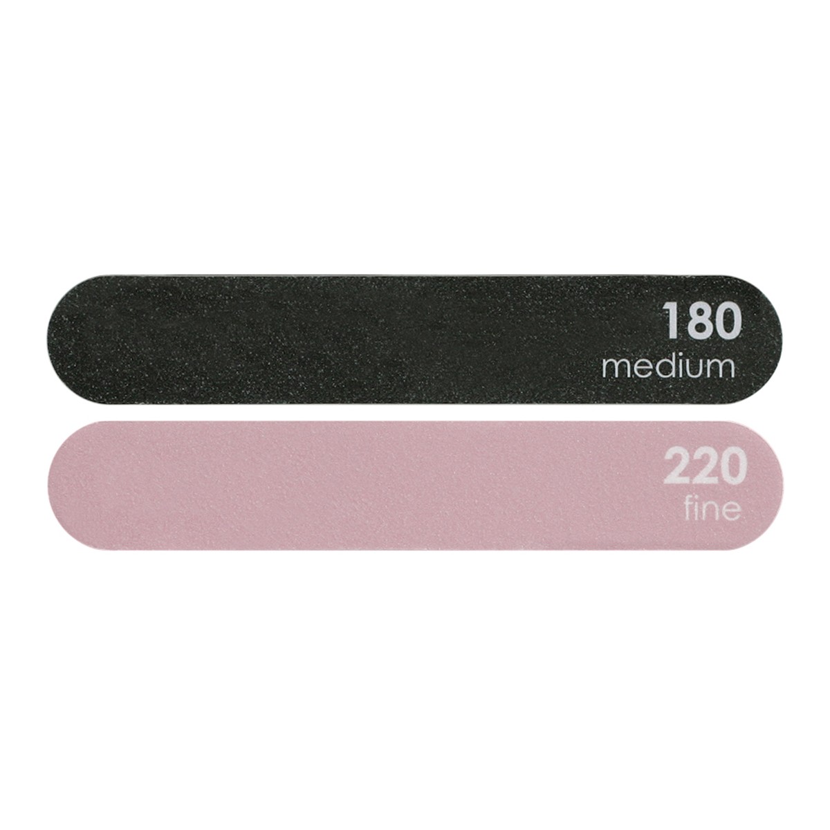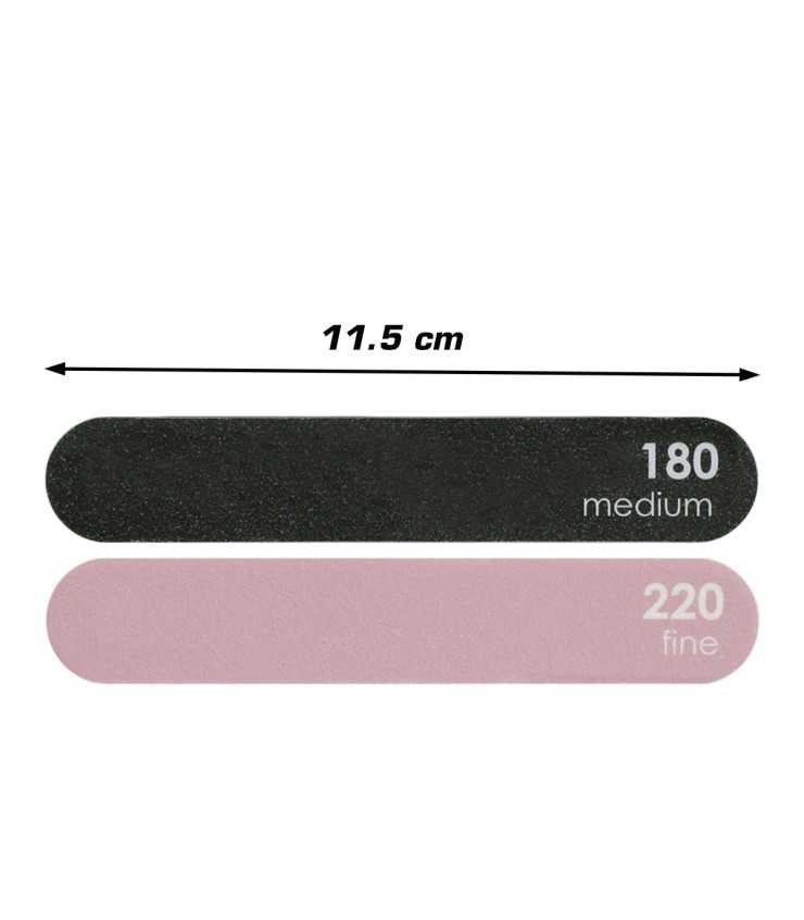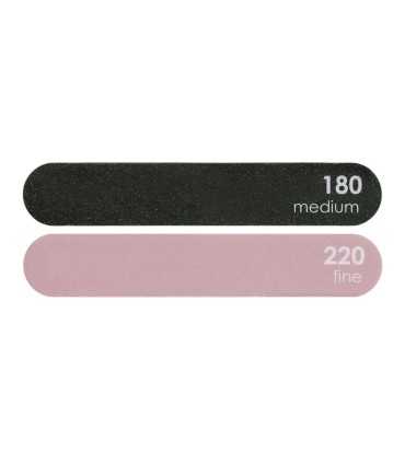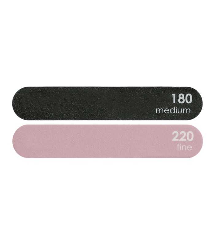 La lima de grano fino (220), en color rosa, proporciona un acabado más suave y preciso, ideal para dar la forma final y pulir los bordes.