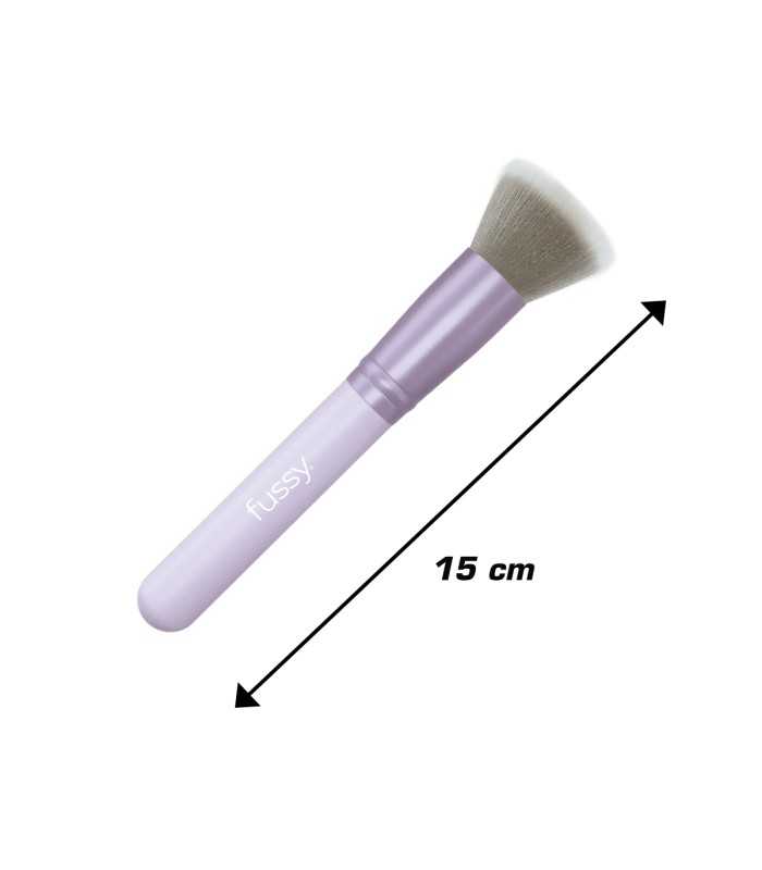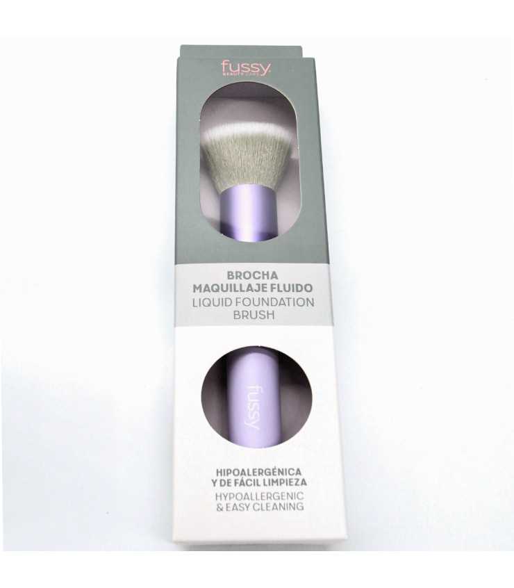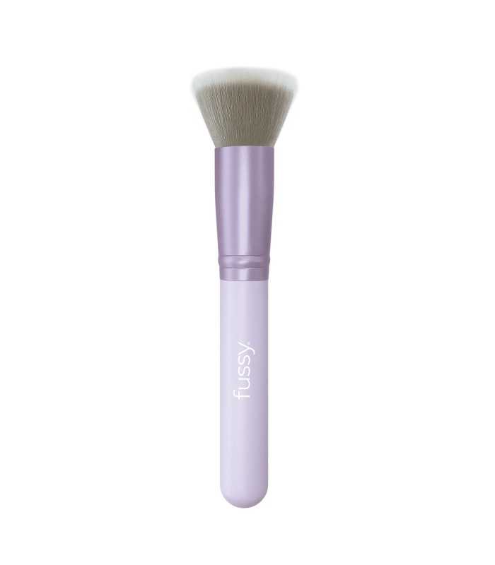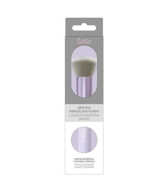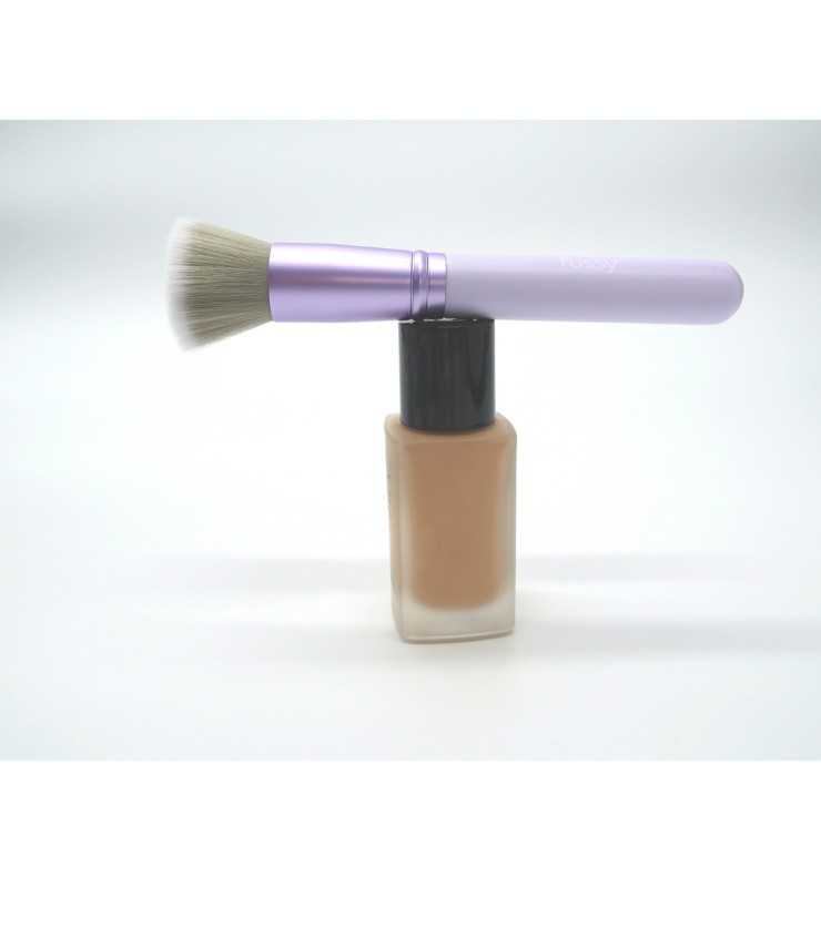 Brocha con cabezal plano, pelo sintético antibacteriano y mango ergonómico, ideal para aplicar bases fluidas con acabado natural y preciso.