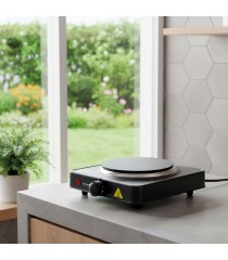 COOK 1 ofrece cocción uniforme con su placa de hierro fundido, diseño compacto para cualquier espacio y control de temperatura preciso y seguro.