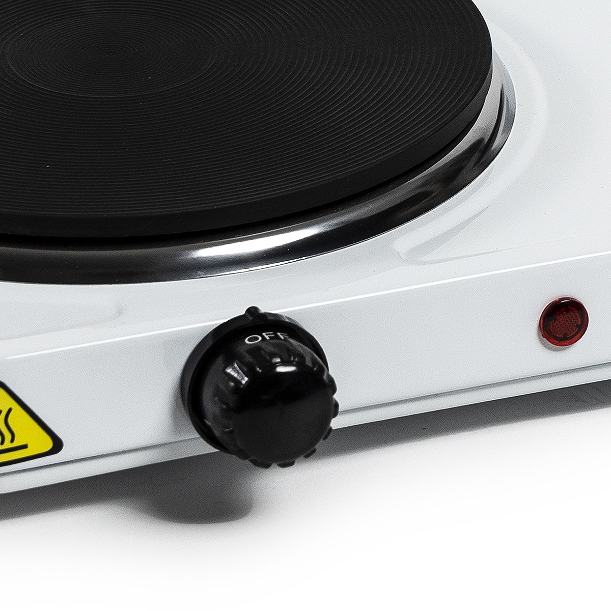 Las perillas regulables te permiten cocinar a fuego lento o alto con total seguridad, mientras que el LED indicador de funcionamiento te señala cuándo la cocina está encendida.