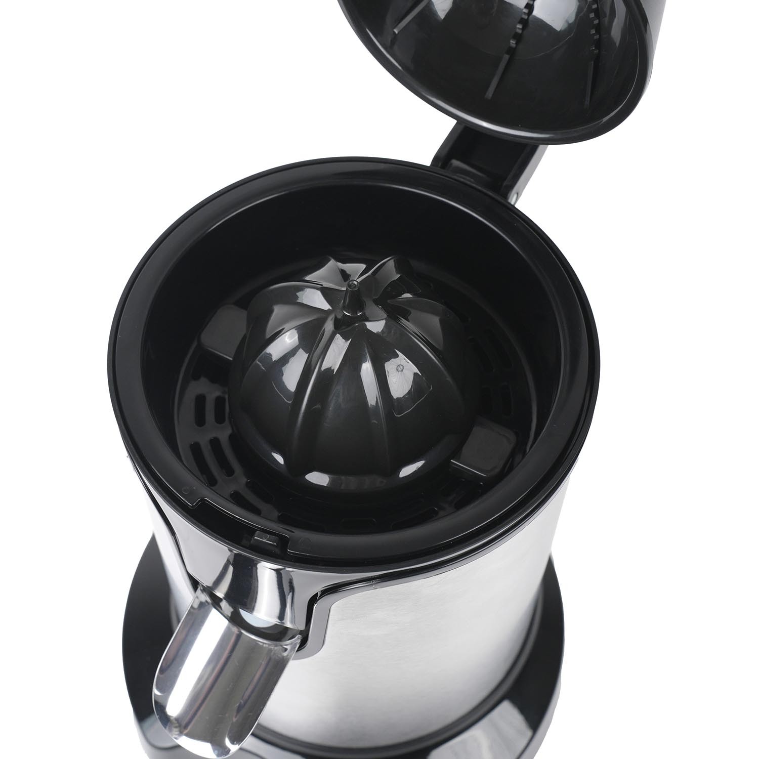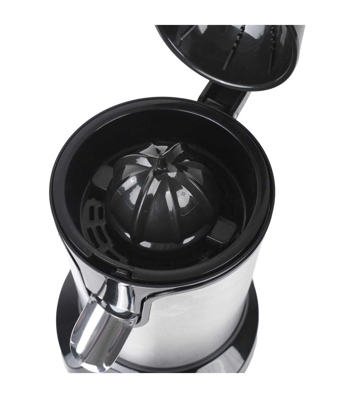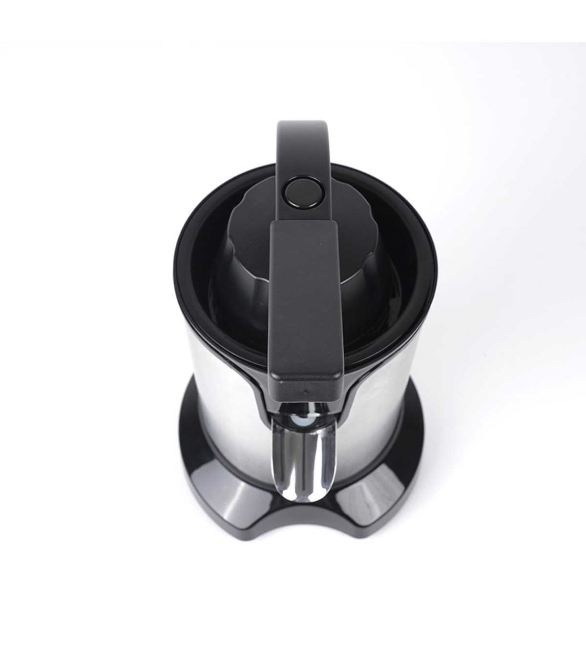 Exprimidor de brazo 600W con sistema de palanca de presión, doble cono intercambiable y boquilla de acero inoxidable con sistema antigoteo para extracción profesional.