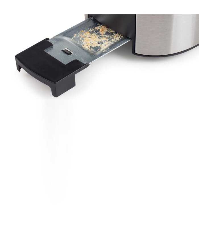 Su sistema de seguridad con expulsión y apagado automático ofrece tranquilidad, mientras que la bandeja recoge migas extraíble y el almacenamiento integrado de cable mantienen tu espacio ordenado y limpio.