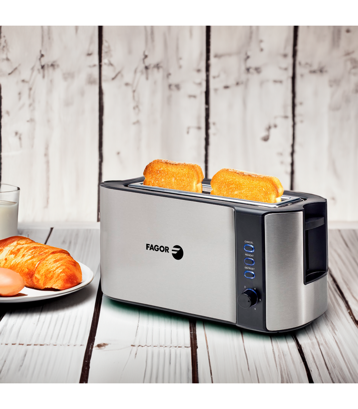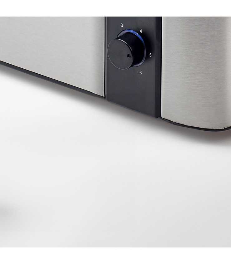 Gracias a su ranura extra larga y ancha, podrás tostar desde dos rebanadas estándar hasta panes especiales como baguettes, con 6 niveles de tostado ajustables para conseguir el punto exacto que prefieras.
