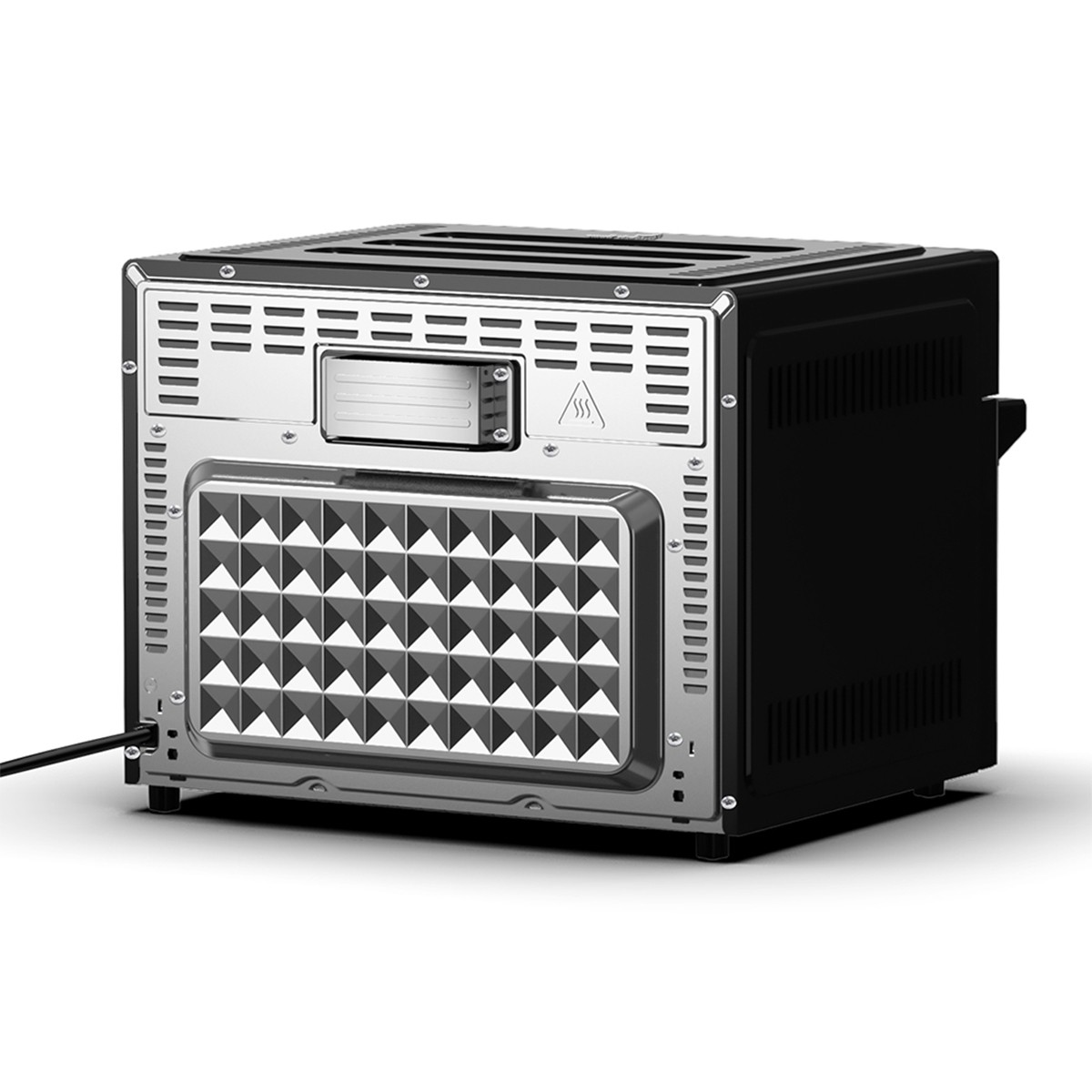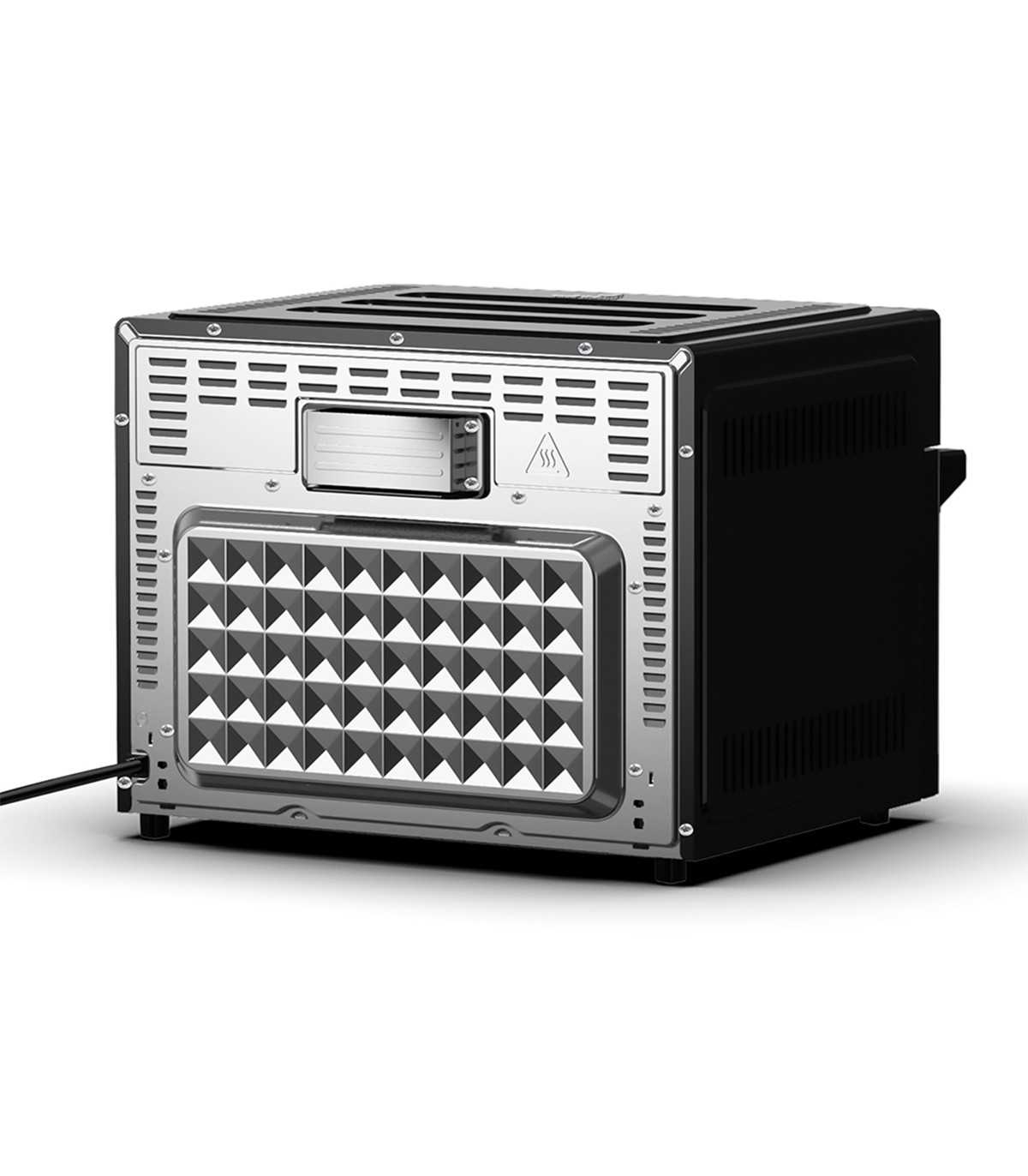 - Dos funciones en un solo aparato – Fríe con aire para obtener comidas más saludables y crujientes con poco o nada de aceite, o utiliza el horno tradicional para pizzas, asados, repostería y mucho más.