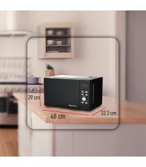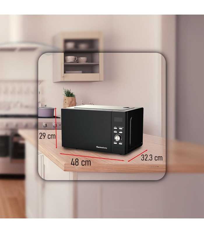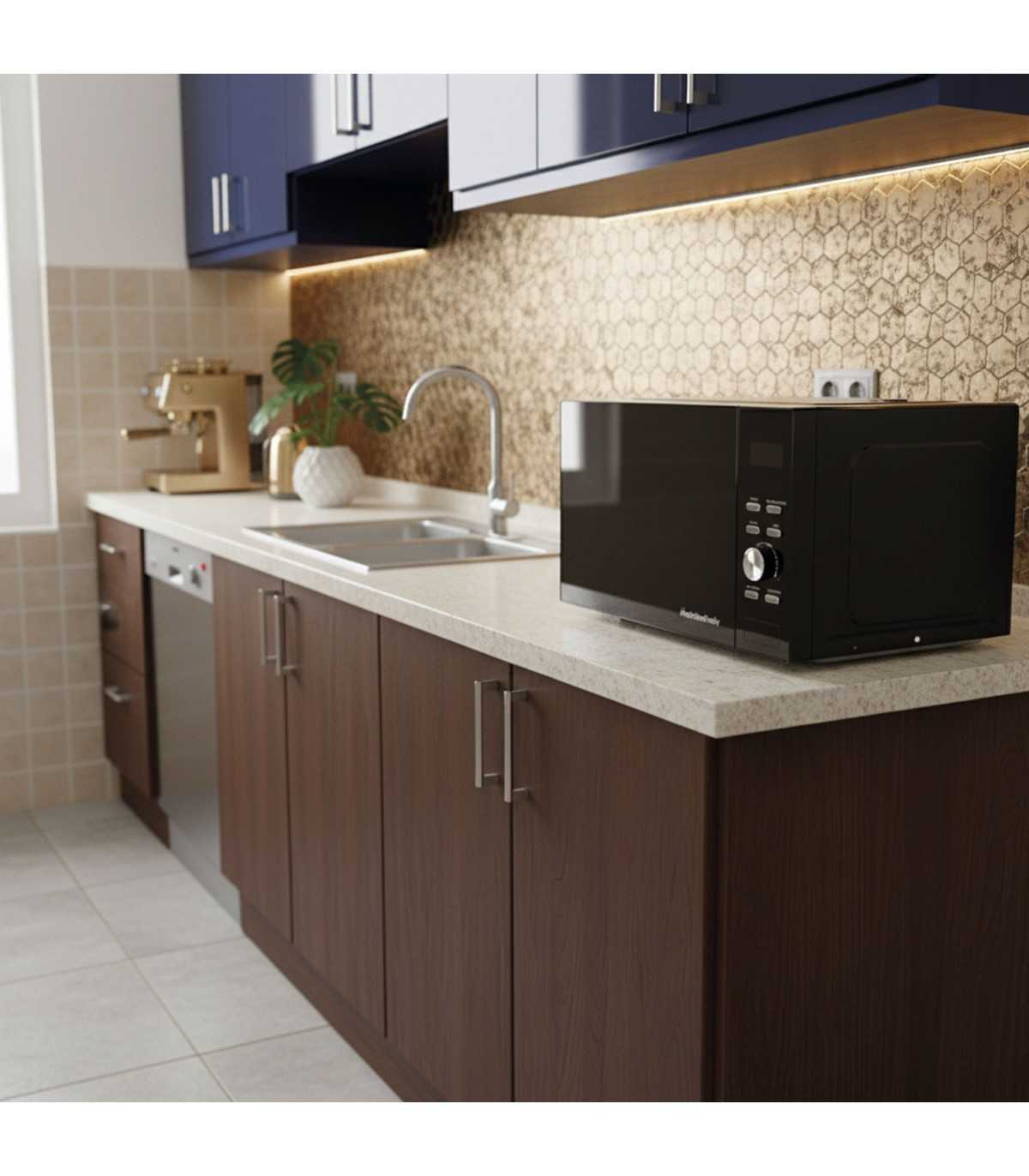 GOLIA combina microondas y freidora de aire en un solo equipo con grill, pantalla táctil y 23L de capacidad, para cocinar rápido, saludable y con estilo.