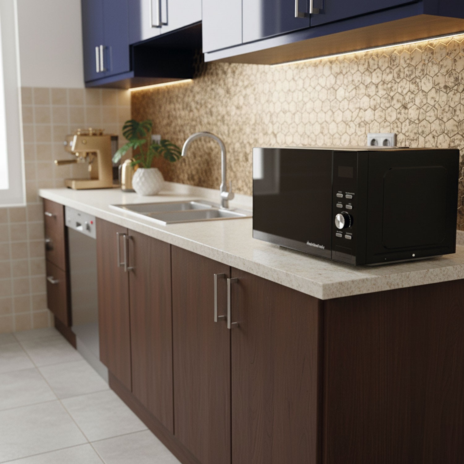 Su sistema integrado permite cocinar con aire caliente, calentar con microondas y dorar con la función grill, asegurando resultados perfectos, crujientes por fuera y jugosos por dentro.