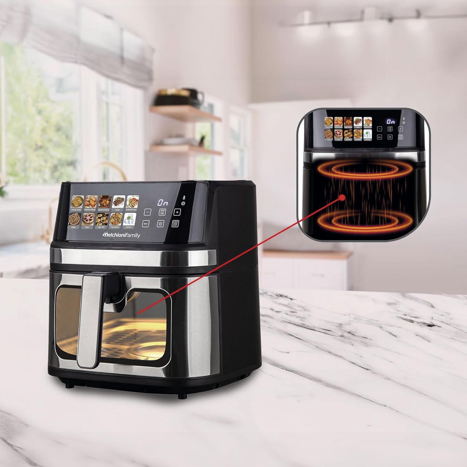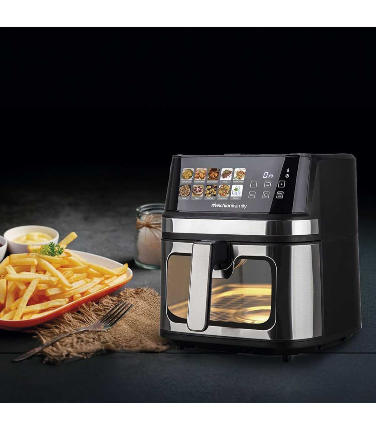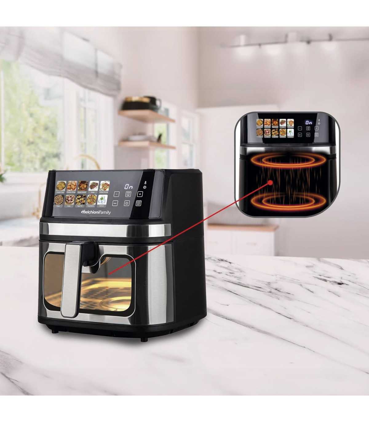 La freidora de aire Gaia Plus de Melchioni combina alta capacidad, potencia y tecnología avanzada para ofrecerte una experiencia de cocina rápida, saludable y profesional.