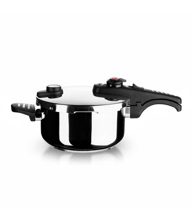 Cocción rápida y precisa: selector de presión con niveles rápida y súper rápida, y triple sistema de seguridad.