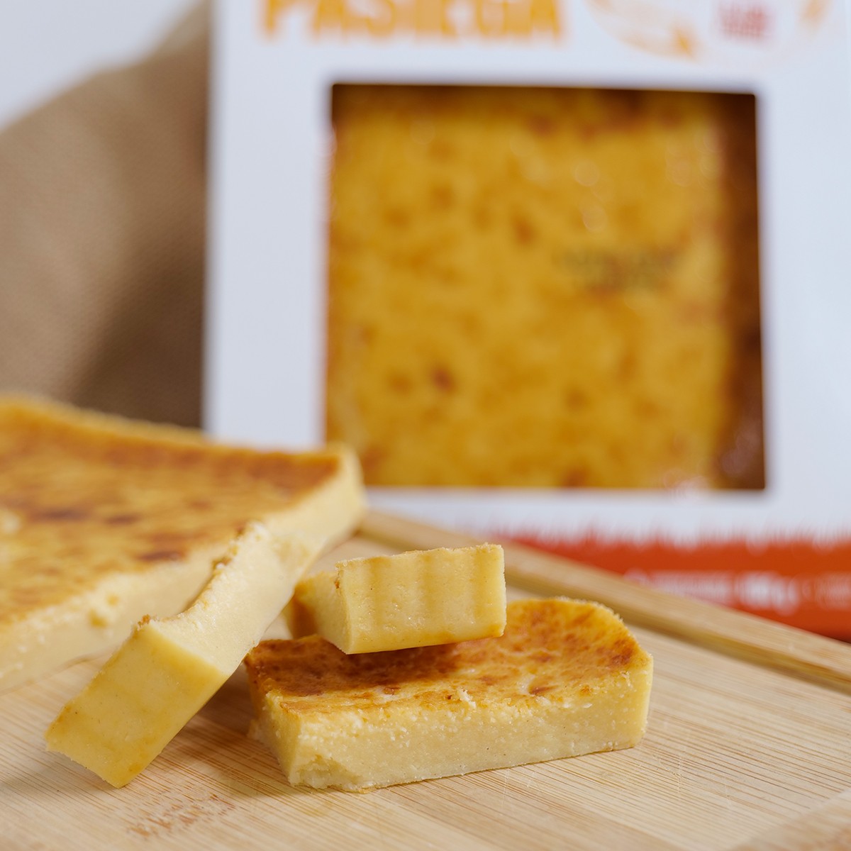 Presenta un color entre blanco y amarillo, con una superficie ligeramente tostada y un delicioso aroma a leche cuajada, limón y canela. Cada bocado es un viaje a la repostería más tradicional de la región.
