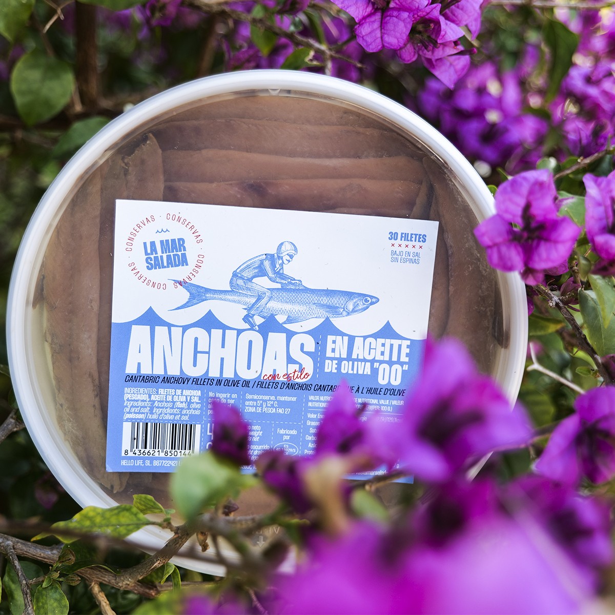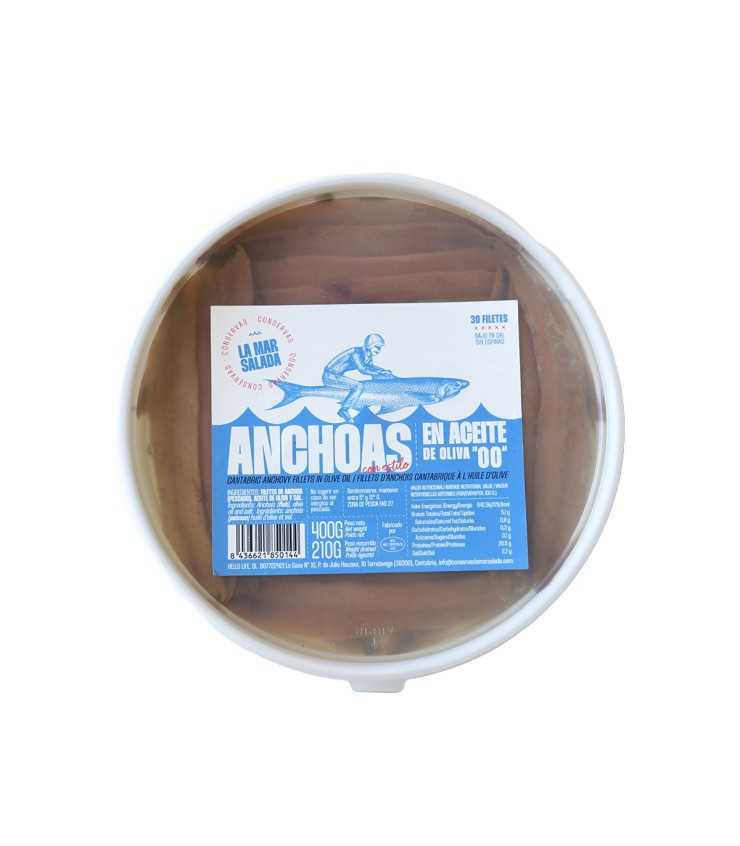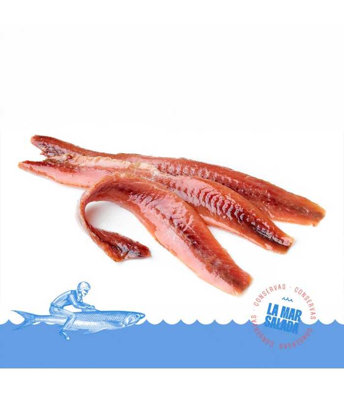 Descubre el auténtico sabor del Mar Cantábrico con las anchoas LA MAR SALADA, elaboradas artesanalmente a partir del bocarte (Engraulis encrasicolus), un pequeño pez fresco y rico en Omega-3 que nadan en nuestras aguas. Este producto es una fuente natural de proteínas, hierro, potasio, calcio y vitaminas A y B, con un bajo aporte calórico que las convierte en un alimento esencial para una dieta equilibrada y saludable.