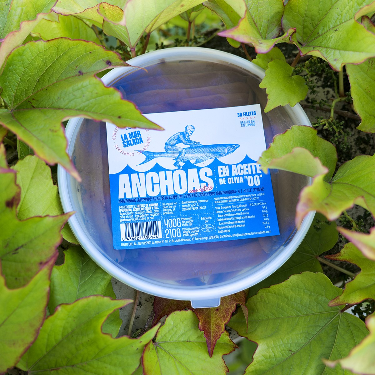 - Ingredientes: Anchoas frescas (Engraulis encrasicolus), aceite de oliva y sal.