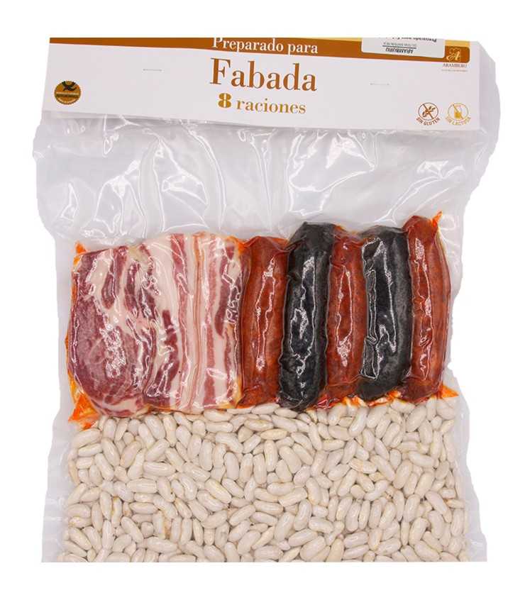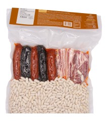 Contiene: 800 gr. de Fabes, 3 chorizos, 2 morcilla, lacón y panceta.