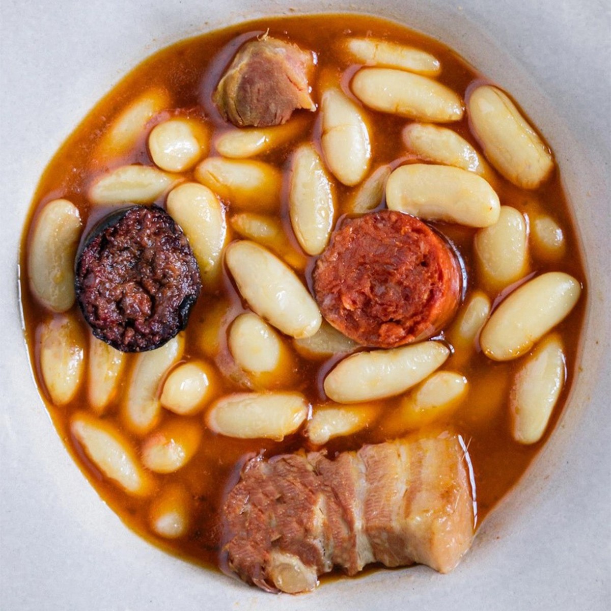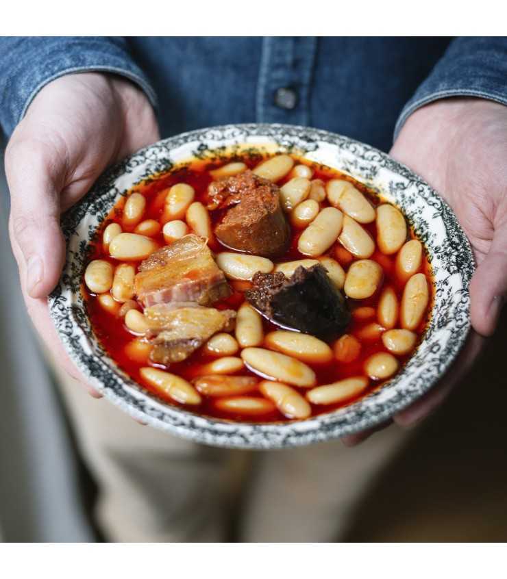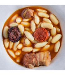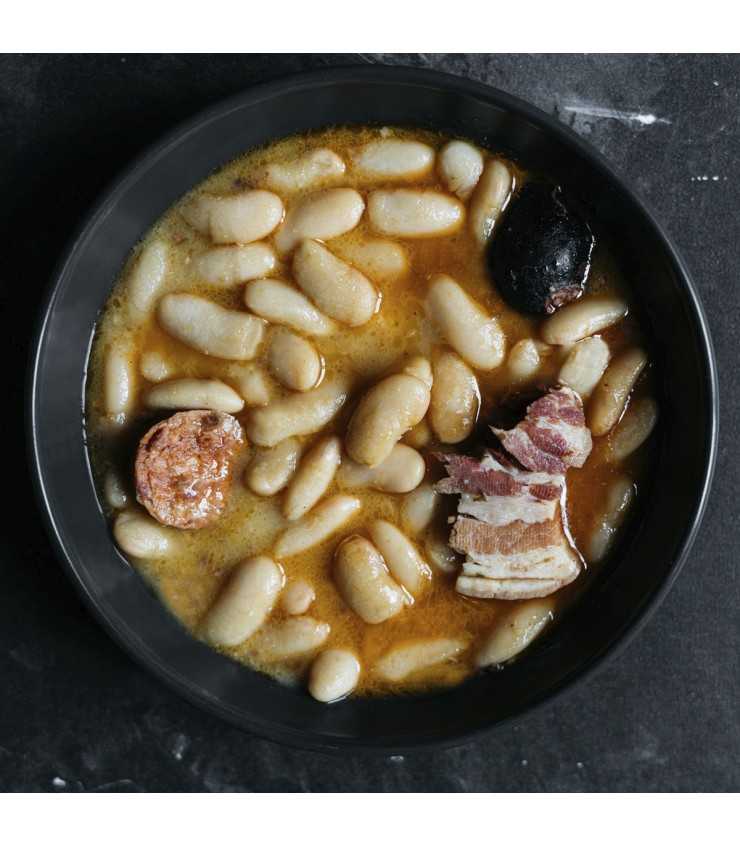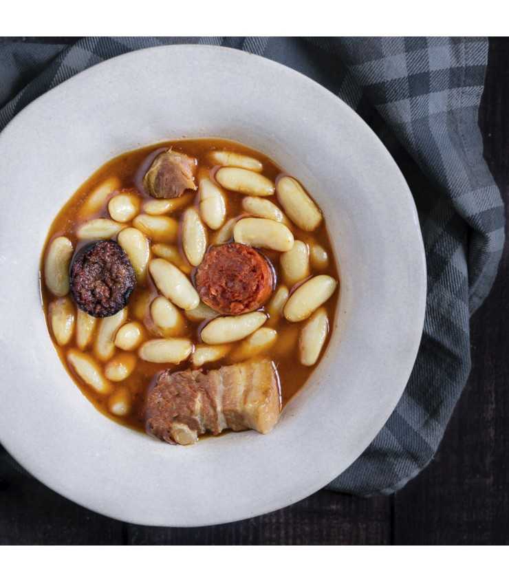 Auténtica fabada asturiana: incluye fabes, morcilla, chorizo, lacón y panceta de calidad premium.