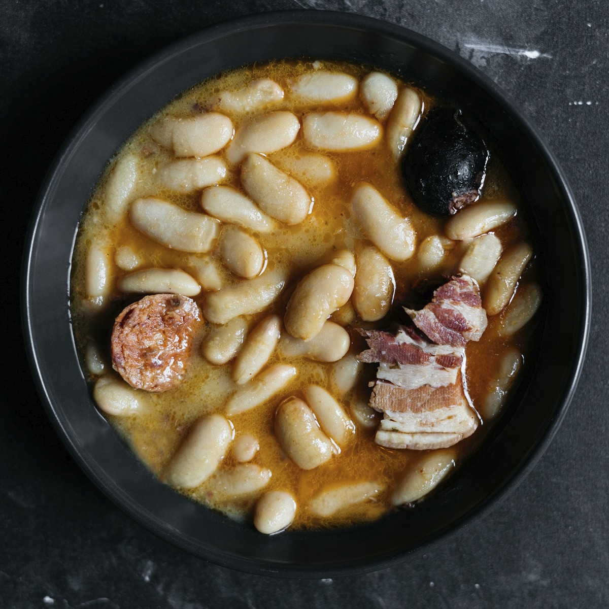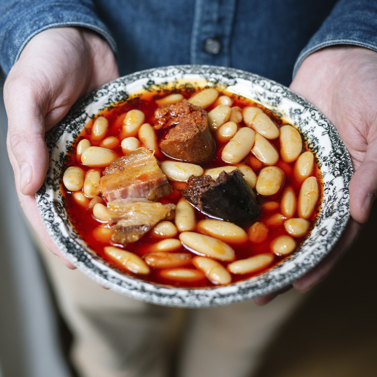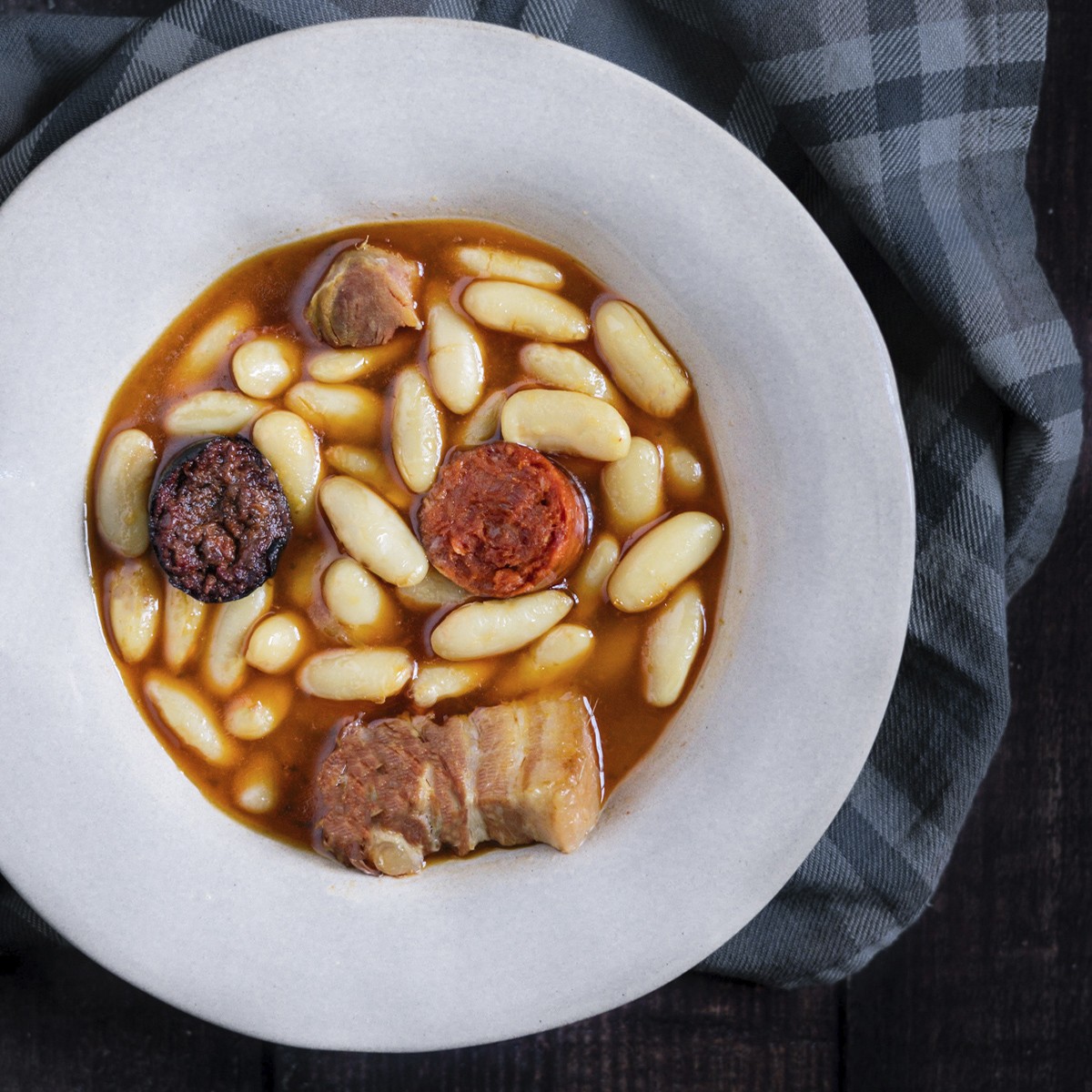 Auténtica fabada asturiana: incluye fabes, morcilla, chorizo, lacón y panceta de calidad premium.