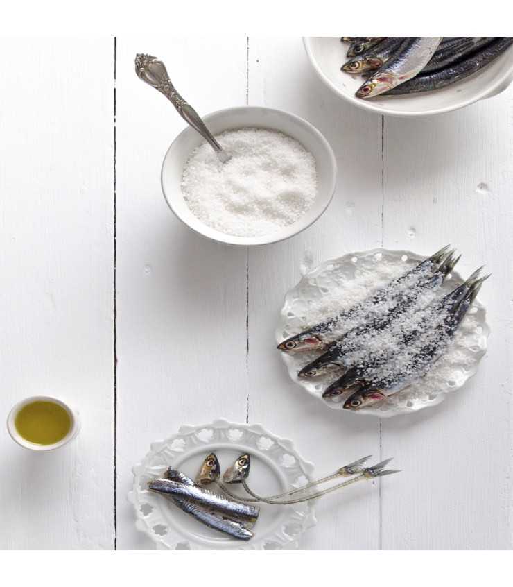 Anchoas, aceite de girasol, sal.