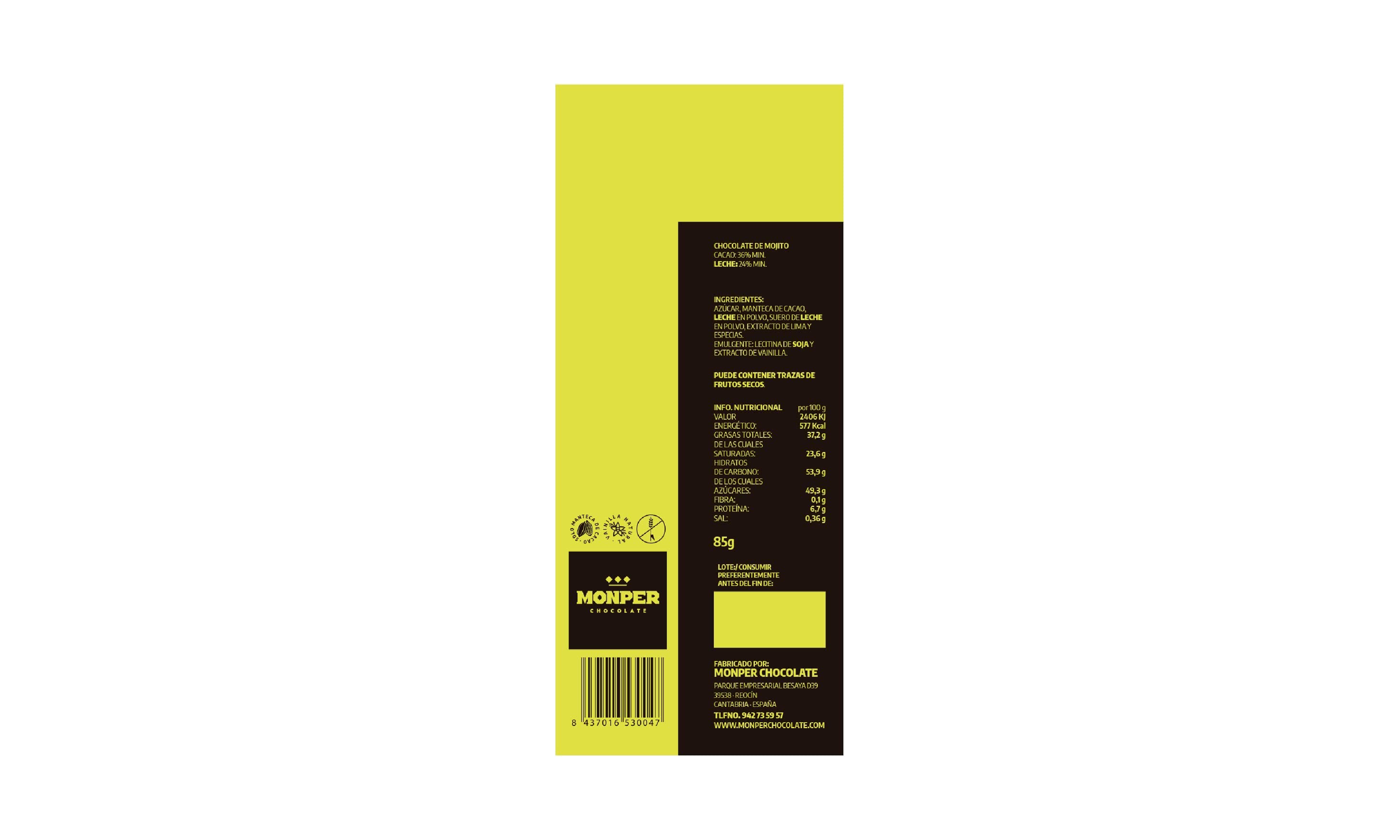Monper lo ha hecho posible con su nuevo sabor de autor: el chocolate de mojito. Suave y refrescante, con su toque a hierbabuena te dejará siempre con ganas de mucho más.