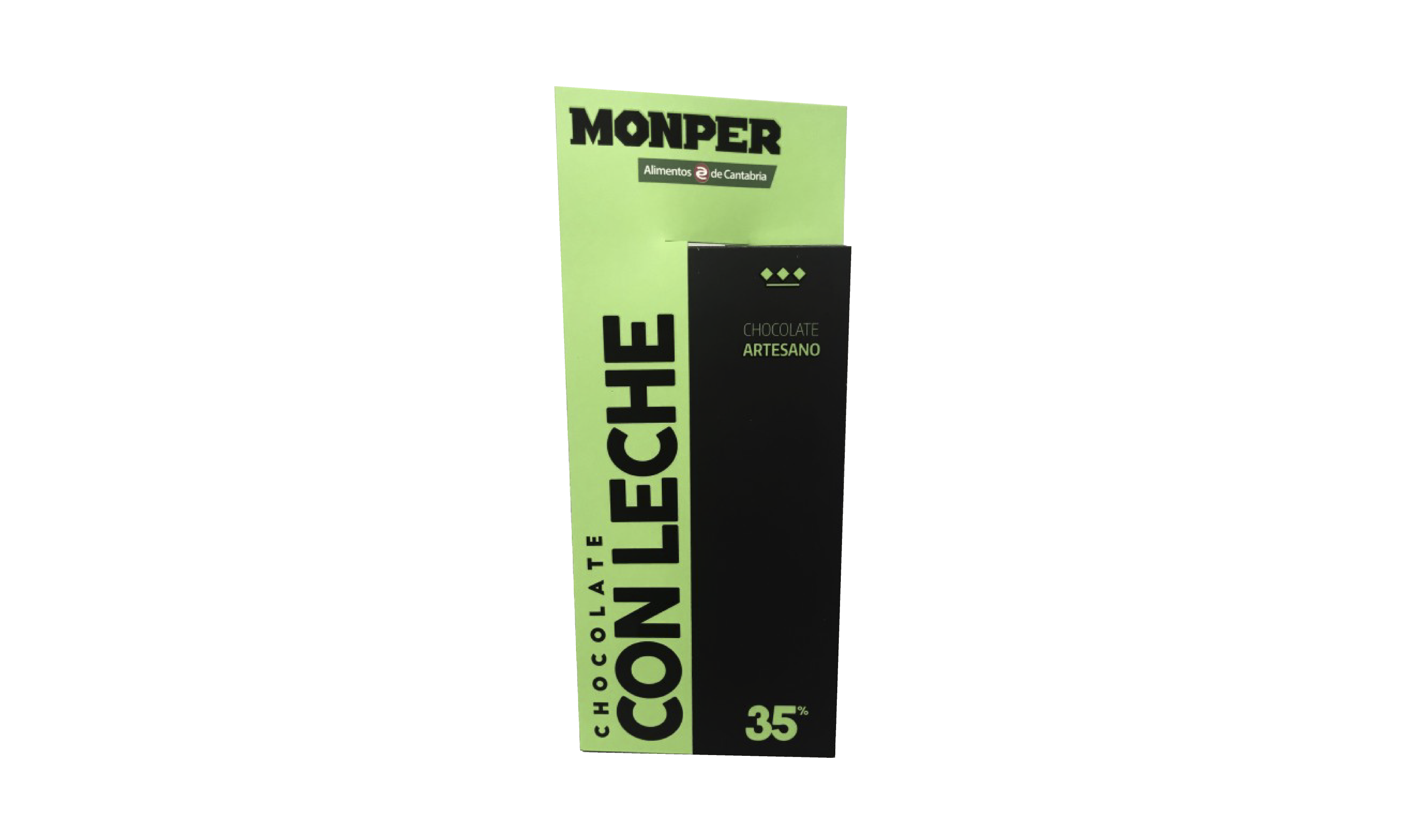 Si te va lo dulce, tienes que probar esta tableta de chocolate con leche MONPER. · Elaborado en España · Tableta de 85 gr · 100% artesano